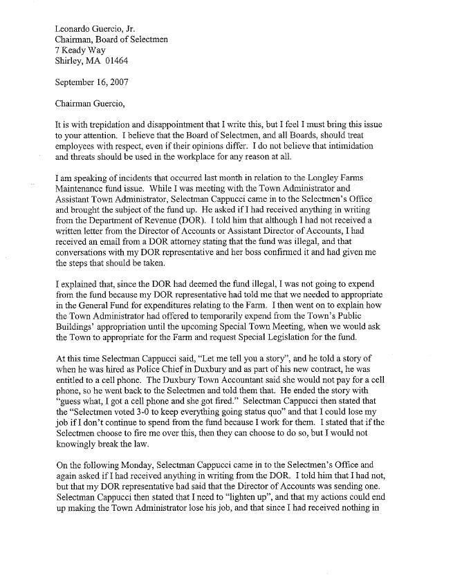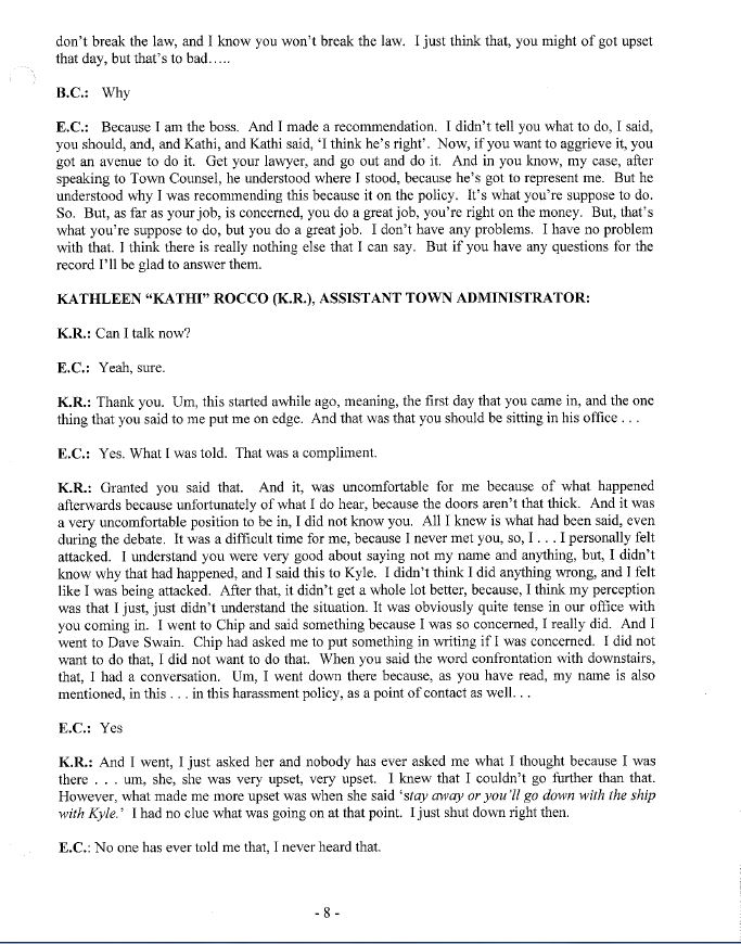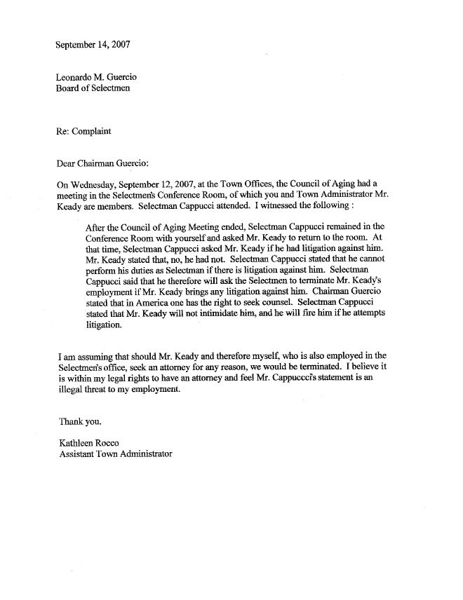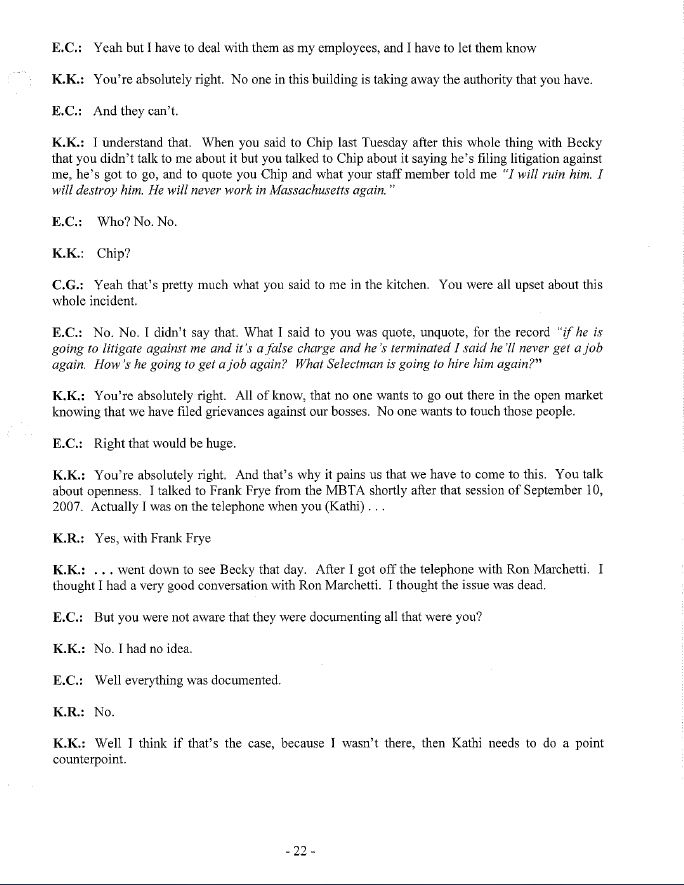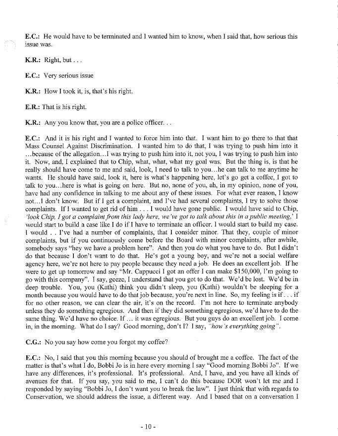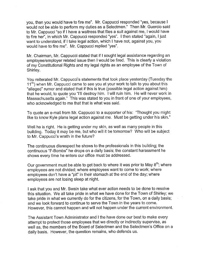 Offered for your review to show the extent of harassment, hostile work environment et-all Cappucci will do to anyone who gets in his way, Shirley Voted for this "man".