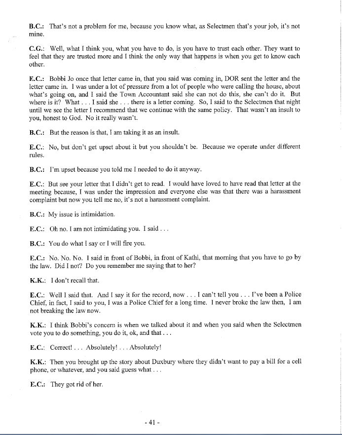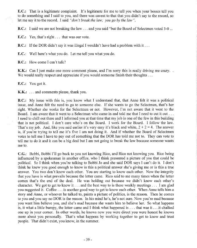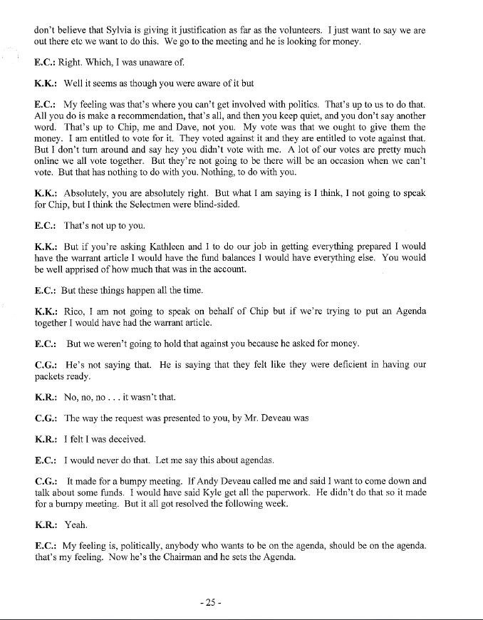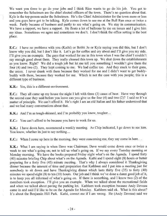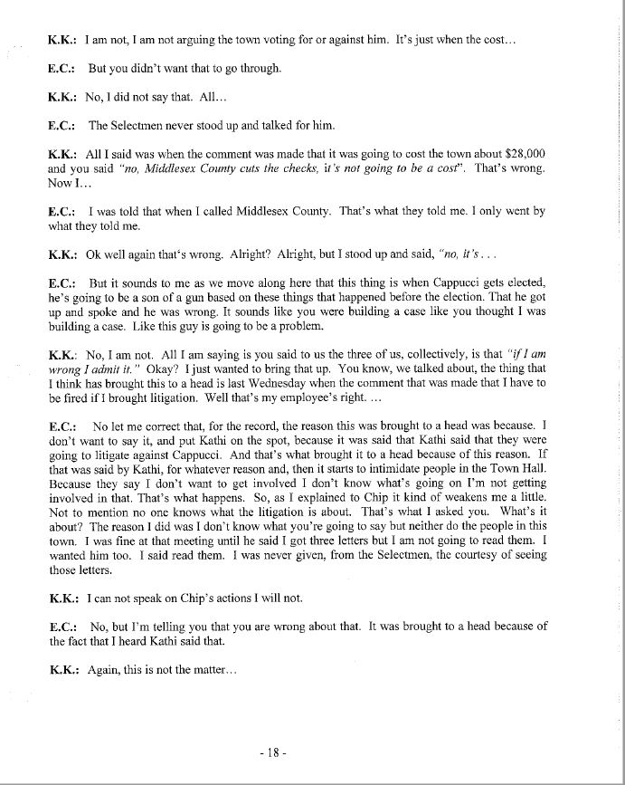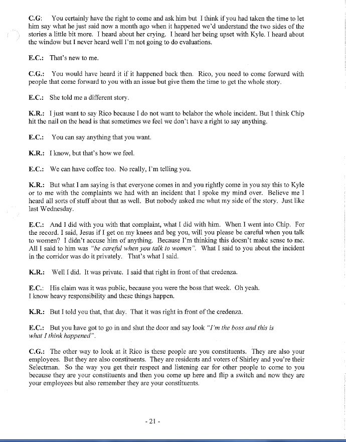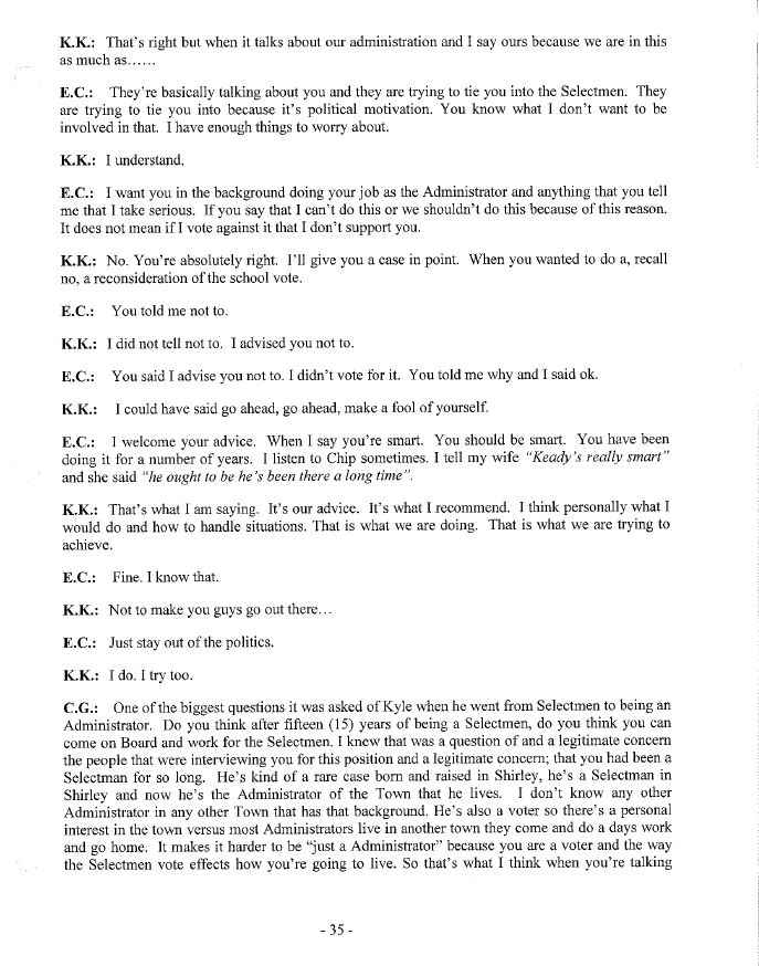 Selectmen - Public Executive Session - 6/6/17, which can been seen here https://www.shirleymedia.org/Vod/Meetings/Board-of-Selectmen-Full you again hear Enrico Cappucci deny having
