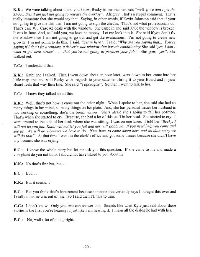 NOTICE the deliberate and systematic, harassment, the self important attitude on full (and dangerous) display. This Executive Session is 47 pages in length and there are three signed statements attached.